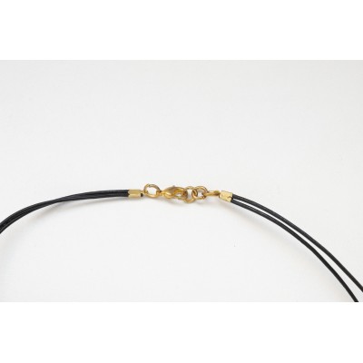 Tour de cou avec 3 anémones turquoises et or 12 carats, 4 perles turquoises, montées sur cordon cuir avec fermoir